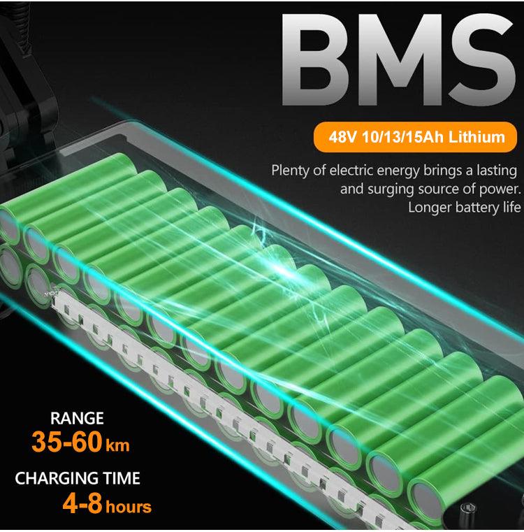 Paired with a 48V 15Ah battery, you’ll enjoy a dependable 40–49 km range, so you ride further, stress less, and stop thinking about charging every day.