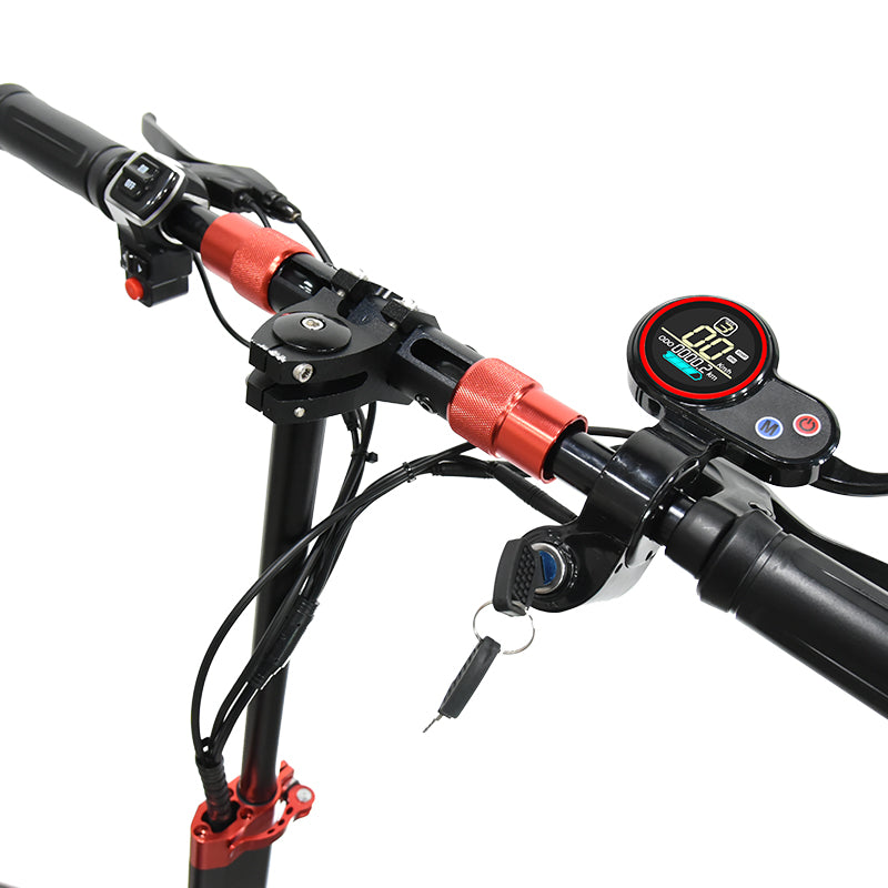 The bright LED LCD display puts everything you need right in front of you — speed, battery level, and ride mode in real time. Instantly switch between speed limits (10 / 15 / 25 km/h) or unlock performance modes up to 45 km/h, all with a single control.